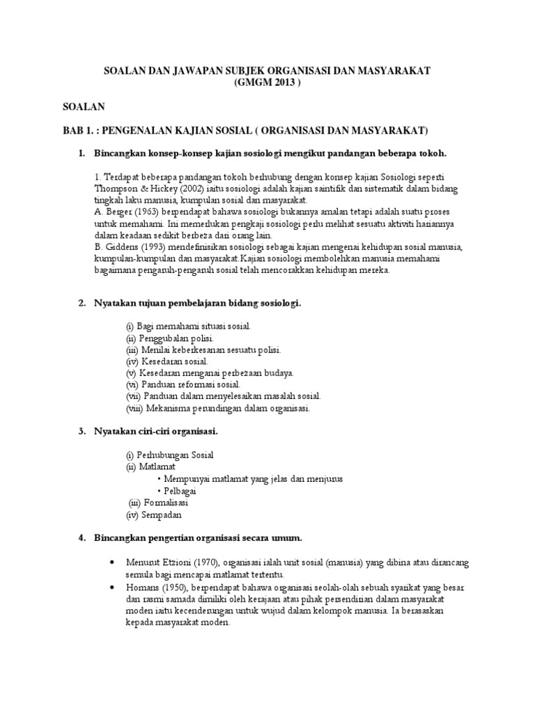 Soalan Dan Jawapan Soalan Organisasi Dan Masyarakat Pdf